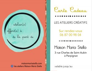 l’atelier de 2h30/ 25€ (valable 6 mois pendant la période des vacances scolaires)